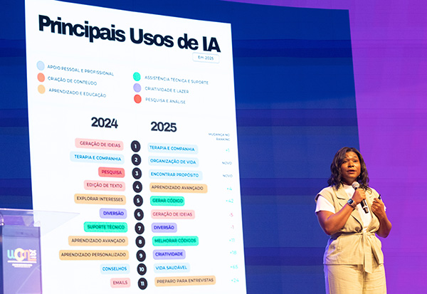 Os desafios e oportunidades da inteligência artificial conduziram diversos debates do WCM 2025. No segundo dia, Lisiane Lemos, mentora no Black Founders Fund do Google e secretária de Inclusão Digital do Rio Grande do Sul, trouxe dados importantes sobre o tema: embora a IA já alcance mais de 90% dos brasileiros, apenas metade entende o que essas ferramentas são.